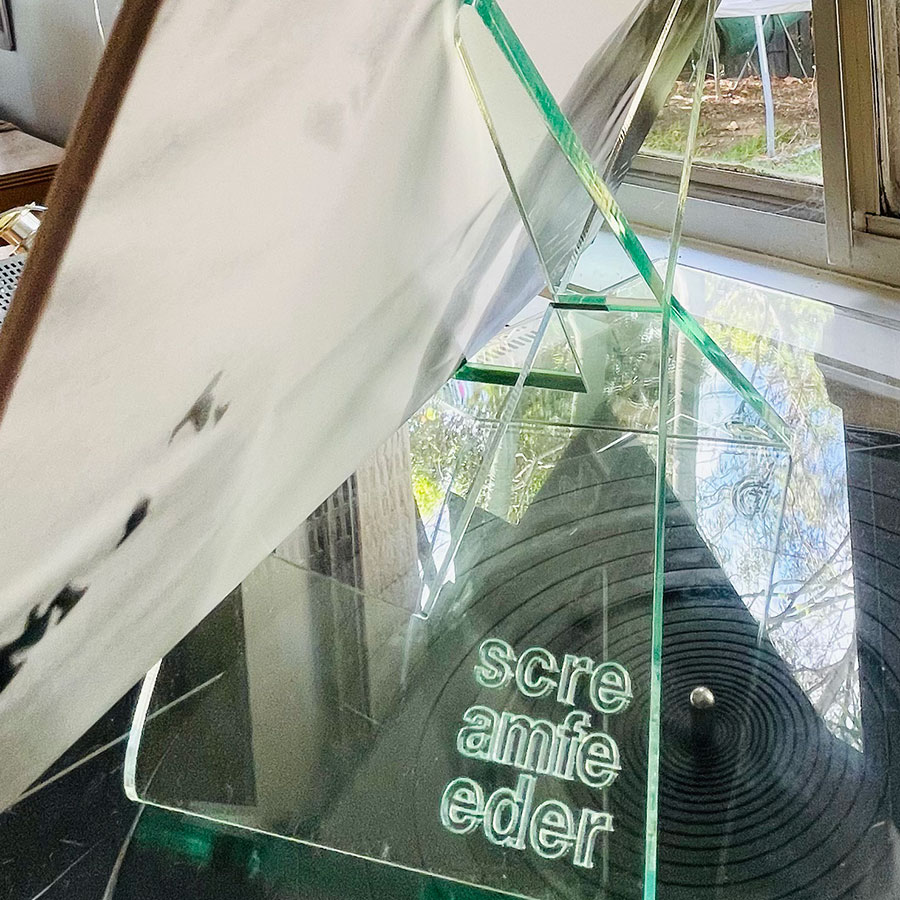 2 Piece perspex record stand by Dubird of Melbourne, in coke-bottle transparent green to match the Rocks on the Soul anniversary edition. Limited run of 50.